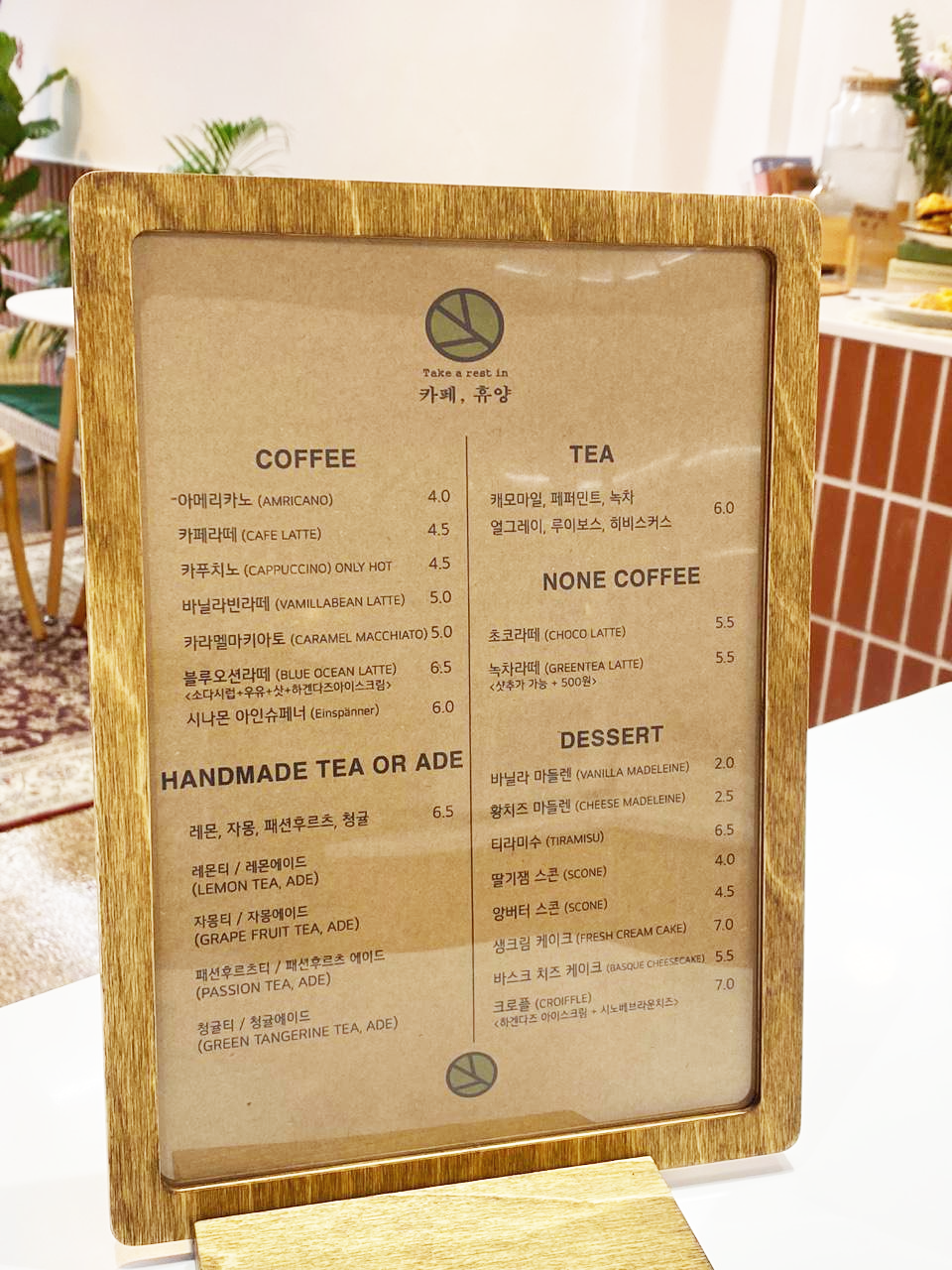 까페휴양의 메뉴입니당!!